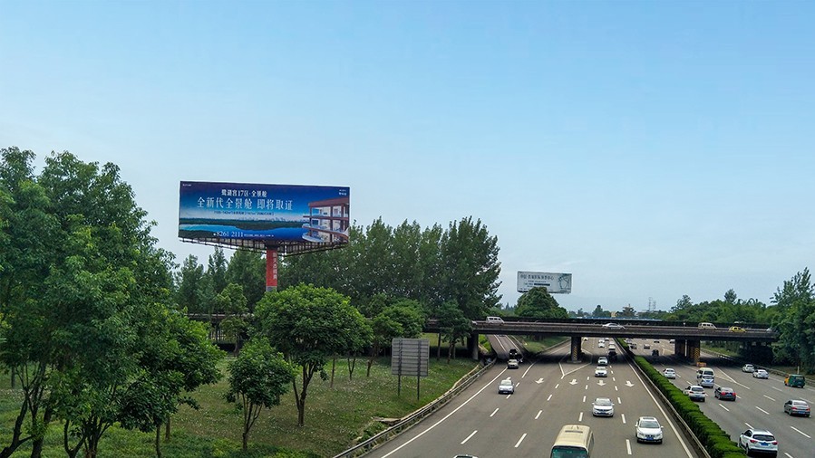 成溫邛高速廣告(收費(fèi)站旁左):該戶外大牌覆蓋繞城高速車流、覆蓋經(jīng)青羊區(qū)、溫江區(qū)、崇州市、大邑縣至邛崍市的往返車輛。