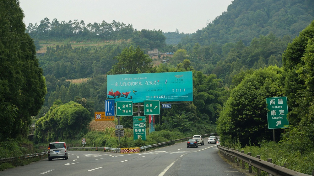 成雅高速廣告(金雞關(guān)出口):該戶外廣告與西昌康定交匯處。是通往雅安、西昌、攀枝花、康定等地區(qū)的重要交通要道,點位受眾面廣,品牌到達率高。